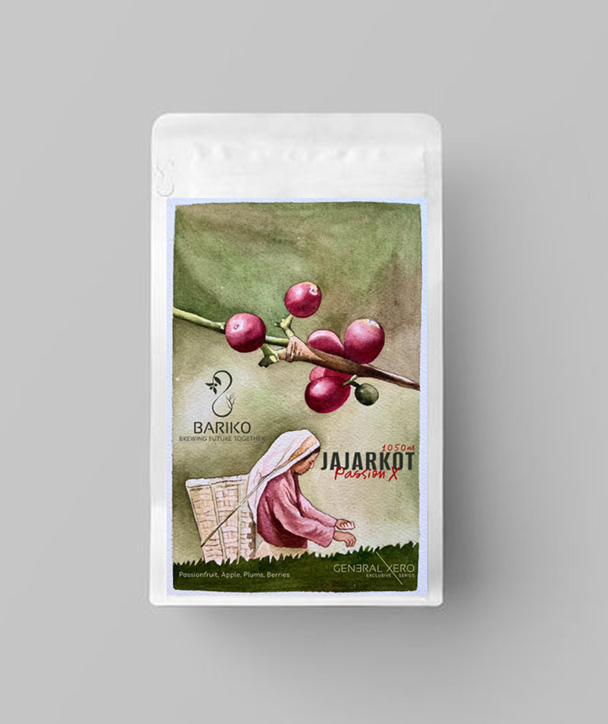 Passion X is part of our Experimental Series, featuring coffees primarily from our farm in Jajarkot. The cherries are selectively picked during peak harvest, often with a Brix level above 20 percent, giving us the ideal starting point for exploring advanced processing techniques. We experiment with various variables - from extended fermentation to slow drying under controlled temperatures - creating favorable conditions for healthy microbial activity that enhances complexity in the final cup. This series reflects a personal approach to processing, where intention meets curiosity, and every decision is made to bring out specific attributes in the coffee. Passion X is the result of a collaboration between a passionate farmer, a processor, a roaster, and an artist - all moving forward with a shared desire to create meaningful impact. This coffee is available exclusively at kar.ma COFFEE.